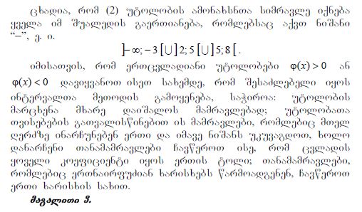 შენიშვნა: მათემატიკური ცნებები ძირითადად წარმოდგენილია ეროვნული მისაღები გამოცდებისთვის განკუთვნილი სახელმძღვანელოდან - ავტორები: ს.თოფურია, ვ.ხოჭოლავა, ნ.მაჭარაშვილი, გ. აბესაძე, ზ. მეტრეველი.