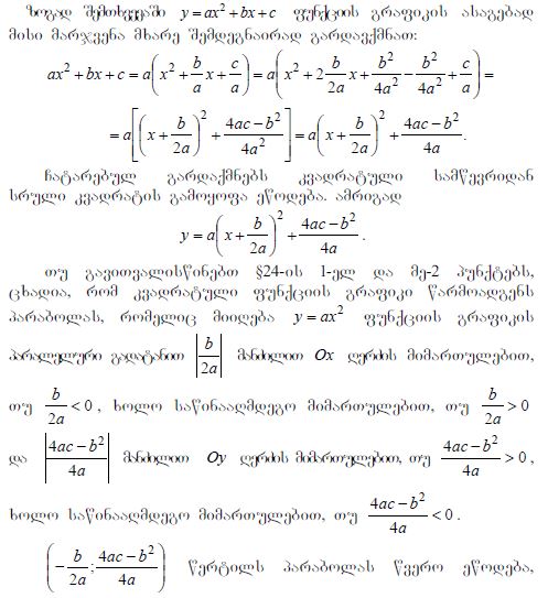 განვიხილოთ კვადრატული ფუნქციის თვისებები და ავაგოთ გრაფიკები.