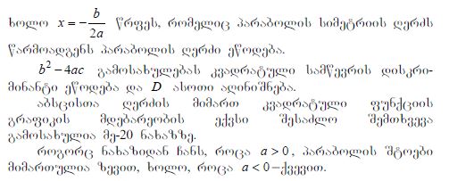 შენიშვნა: მათემატიკური ცნებები ძირითადად წარმოდგენილია ეროვნული მისაღები გამოცდებისთვის განკუთვნილი სახელმძღვანელოდან - ავტორები: ს.თოფურია, ვ.ხოჭოლავა, ნ.მაჭარაშვილი, გ. აბესაძე, ზ. მეტრეველი.