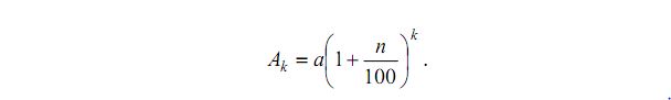 a რიცხვის რთული n%-ით გადიდება რამოდენიმე ეტაპად, ნიშნავს: ყოველ მომდევნო ეტაპის დასაწყისში წინა ეტაპზე მიღებულ რიცხვს დაემატოს მისივე n%. გამომდინარე აქედან Ak რიცხვი, რომელიც წარმოადგენს a რიცხვის მისი რთული n%-ით თანმიმდევრულად k ეტაპად გადიდებულს, გამოითვლება ფორმულით: